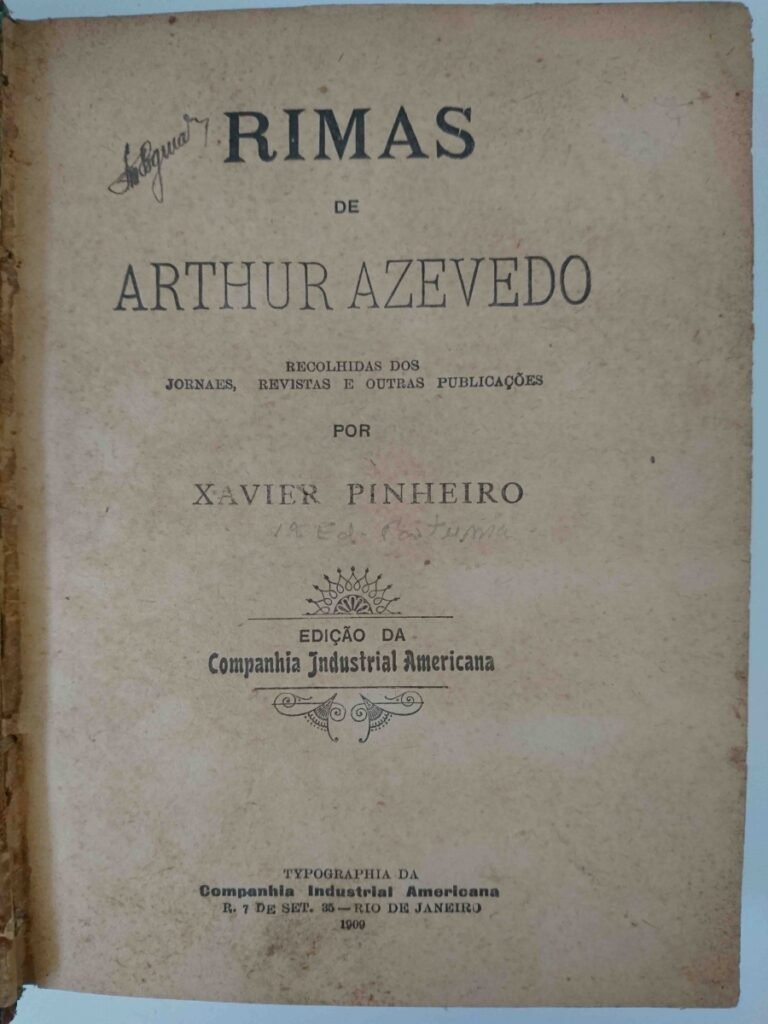 PINHEIRO, Xavier. Rimas de Arthur Azevedo. Rio de Janeiro: Companhia Industrial Americana, 1909